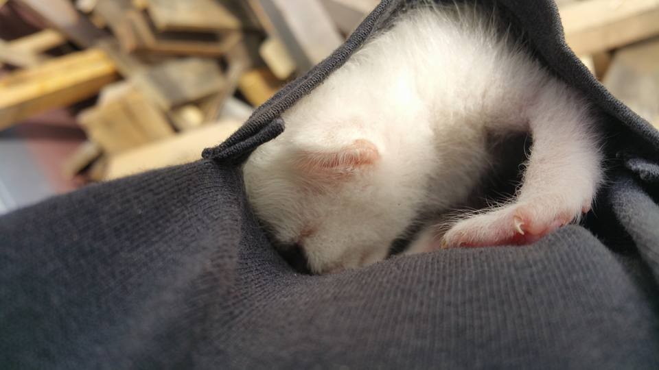 Cliff 1 ay önce çöpteki tahtaların arasından gelen bir miyavlama duyuyor. Daha sonra tahta parçalarının birinin üzerinde çaresizce yatan ve zayıfça miyavlayan bu yavruyu fark ediyor. Hemen ardından onun yalnız olmadığını, tahtaların arasında birkaç kedi daha olduğunu görüyor.