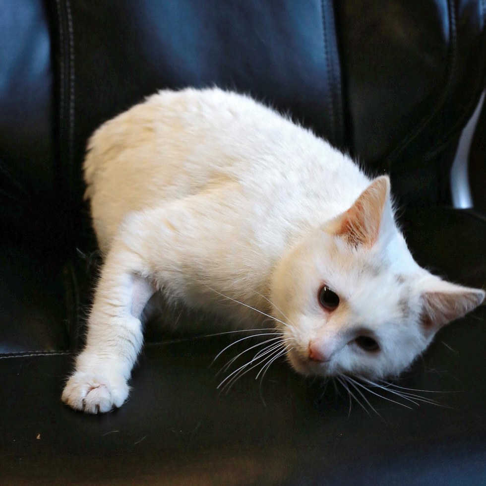 Bu güzel beyaz kedi sokaklarda bitkin halde bulunup önce barınağa oradan da barınağın veterinerine götürüldü. Kedinin hamile olduğu anlaşıldı ve normal doğum yapması çok zordu. Bu yüzden sezaryen doğum tercih edildi.