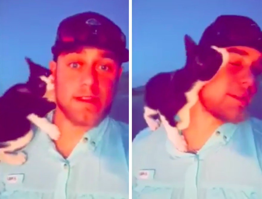 Kediye biraz sevgi ve ilgi gösterdikten sonra siyah-beyaz renkli kedi mutlu bir şekilde yanlarından uzaklaştı. Jason ve arkadaşı da balık tutmak için gölde açılmaya başladılar.