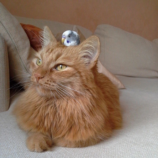 Bizlere çizgi filmlerde öğretilen kuş ve kedi düşmanlığının aslında gerçek olmadığını kanıtlıyorlar.