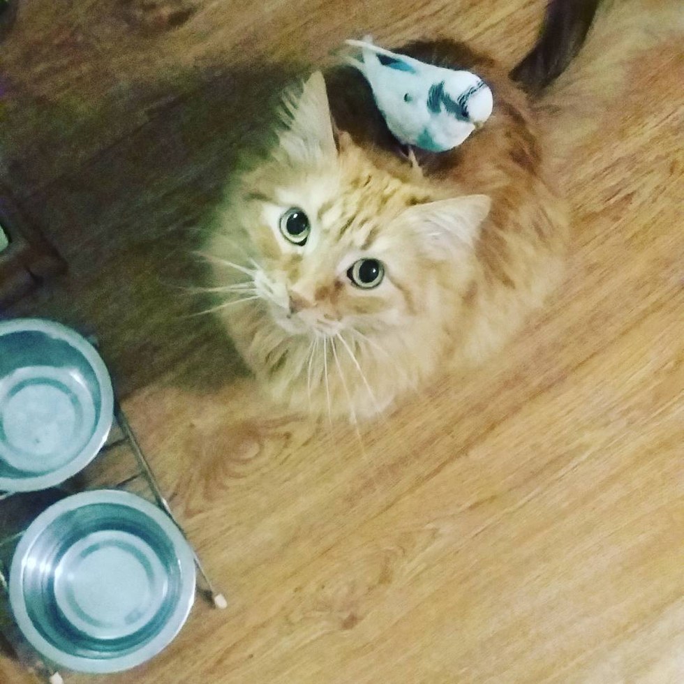 Muhabbet kuşu da 5 yaşında. İlk günden beri kedi kankasının sırtını kendi evi bellenmiş durumda.