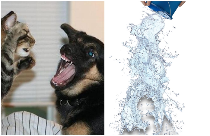 1. Yakında bir yerlerde sürahi varsa, içindeki suyu kavga eden kedi ve köpeğin üzerine boşaltın