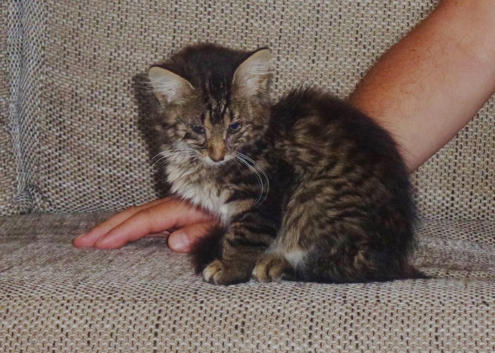 Fakat bu iyi kalpli insanlar ondan vazgeçmediler. Onu hemen eve götürüp, enfeksiyon yüzünden tamamen kapanmış burununu ve gözlerini temizlediler. Bu minik kedi zor nefes almasına rağmen hayata tutunuyordu.